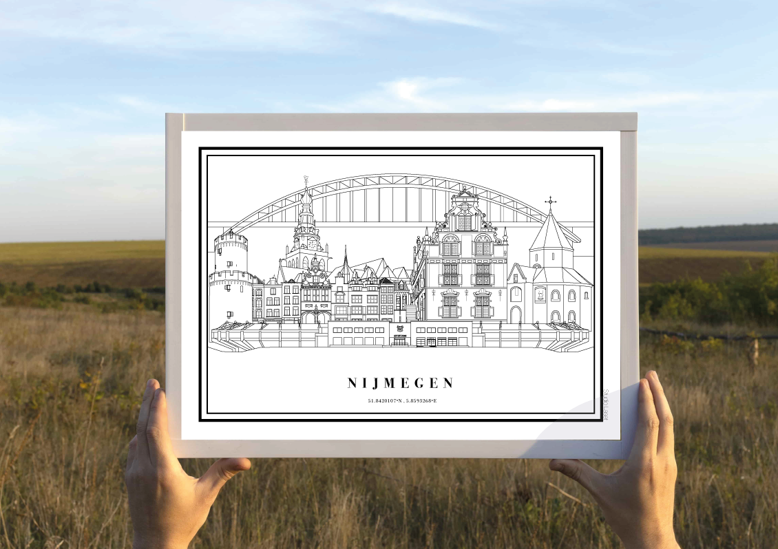Geef een vleugje Nijmeegse charme aan je leefruimte of kies voor een op maat gemaakte illustratie van je favoriete locatie elders. Onze posters vertellen verhalen die een leven lang meegaan.