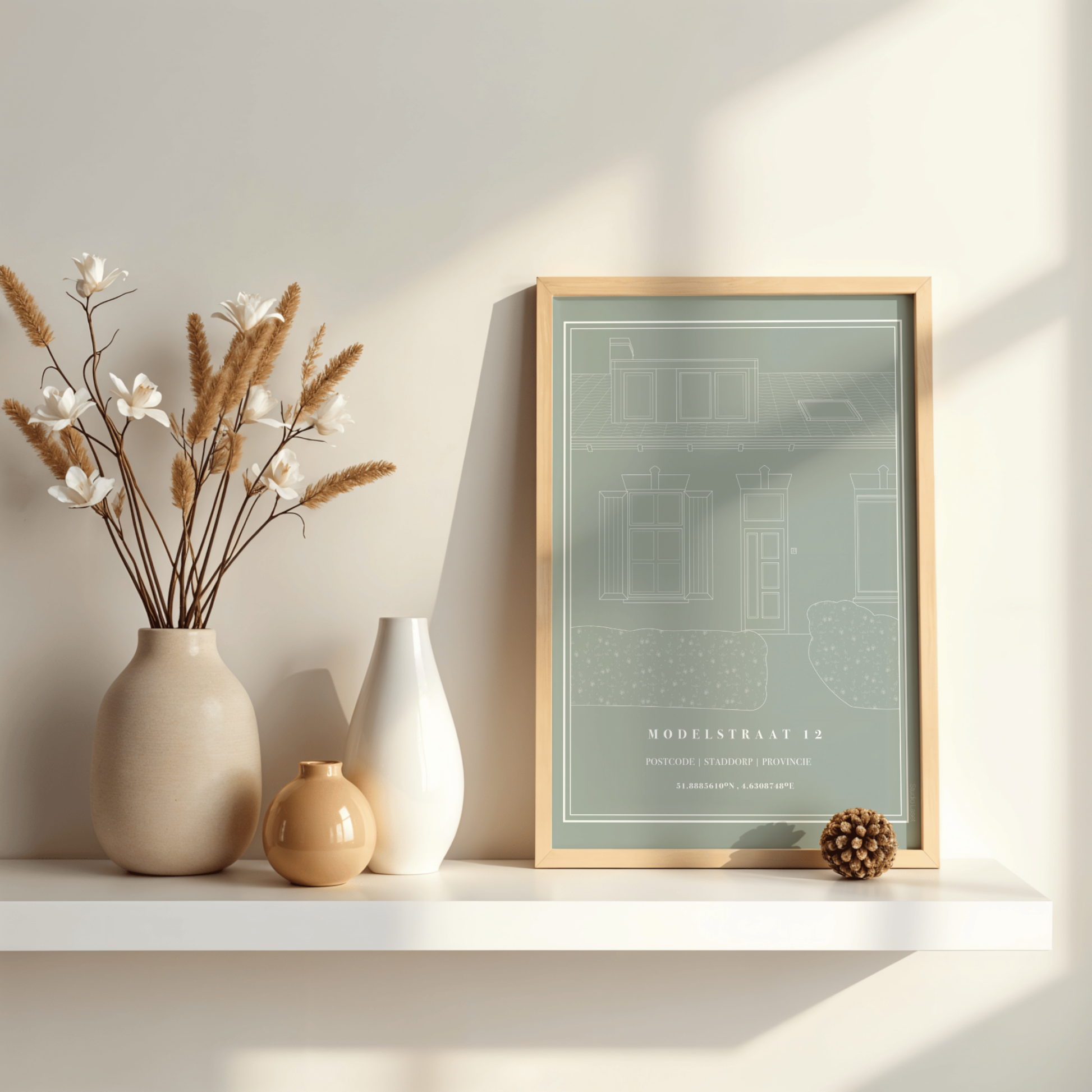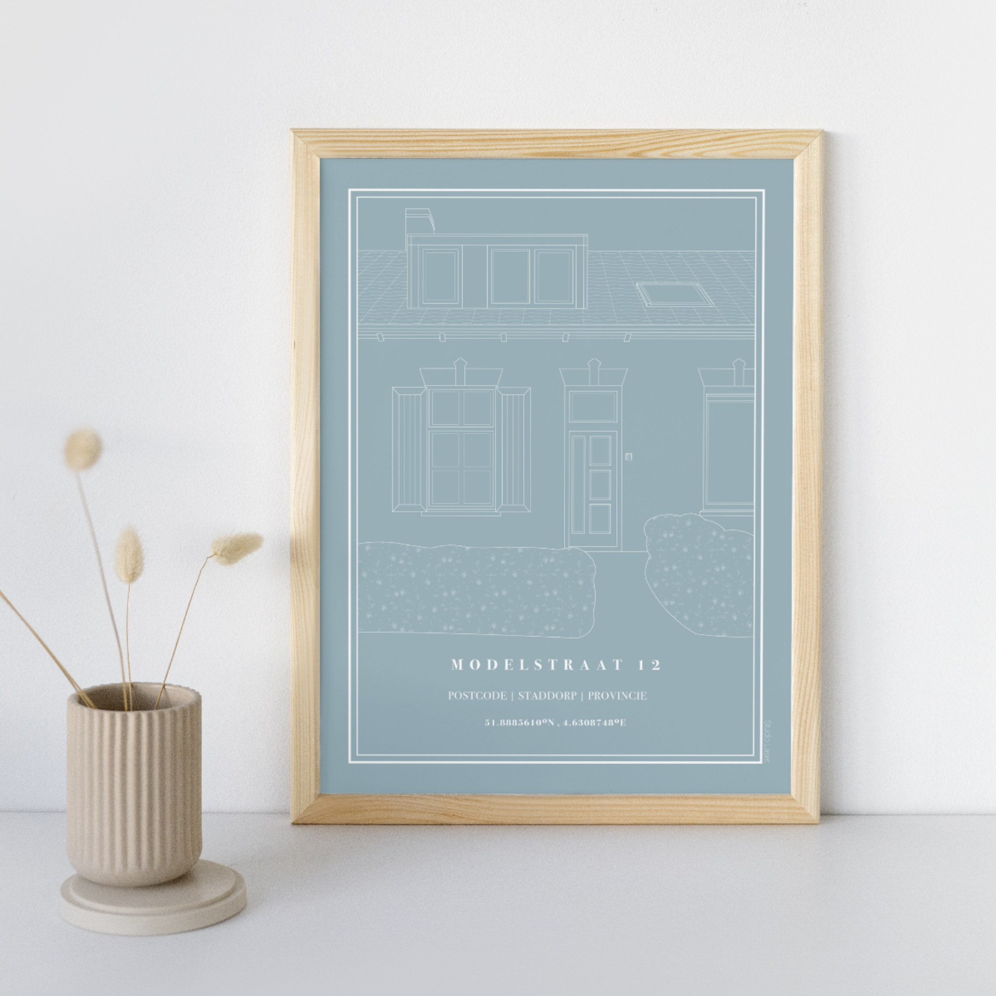 Elke illustratie wordt met zorg digitaal getekend en kan optioneel ingelijst worden in diverse formaten. Kies zelf voor zwart-wit, kleur of een achtergrondkleur die bij jouw interieur past.